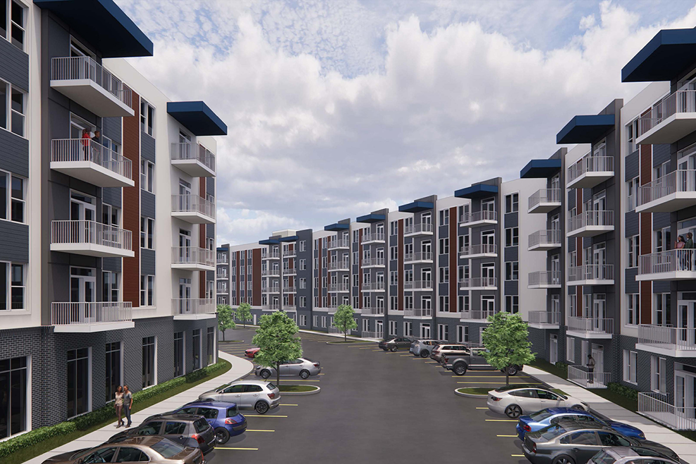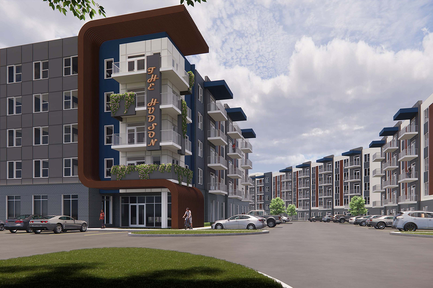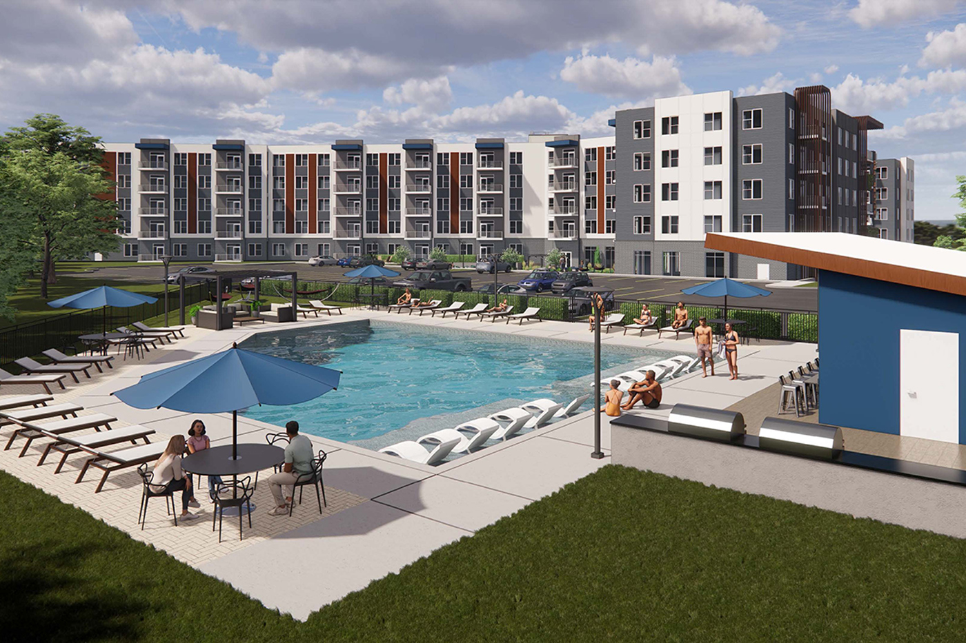 This redevelopment supporting Kennesaw State University students replaces an existing apartment community with a new 204-unit rental housing development centered around a vibrant outdoor environment. The design emphasizes community-building with an activated courtyard and a resort-style pool that together serve as the social and recreational core of the project. Complemented by pavilions and bath houses, the outdoor spaces are envisioned as a blend of activity and respite, offering students places to connect, relax, and enjoy a modern living environment.